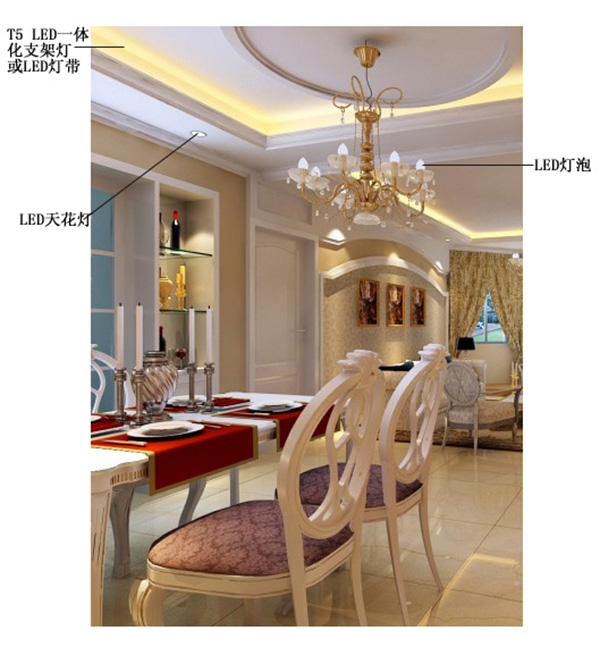 家庭裝修LED照明燈具的應用 隨著人們生活水平的提高和節能環保意識的增強,LED燈具已進入尋常家庭裝修的視野。LED燈具壽命長、節能、價格逐步貼近大眾。家庭臥室照明、客廳照明、餐廳照明、廚房照明、衛生間照明等都可以采用LED燈具。 一、客廳照明 二、臥室照明 三、餐廳照明 四、廚房照明 五、衛生間照明