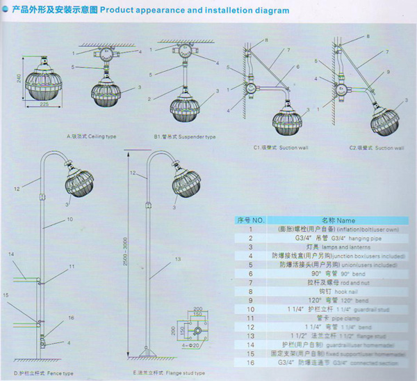 小功率LED防爆燈BC9700-40產(chǎn)品圖: 產(chǎn)品主要特點(diǎn) 光學(xué)系統(tǒng)特點(diǎn) 采用進(jìn)口芯片,點(diǎn)陣式燈珠結(jié)構(gòu),具有優(yōu)異的光通維持率及高光效 采用表面SMT貼裝技術(shù),大幅度提高導(dǎo)熱性能 精心設(shè)計(jì)蜂窩狀配光結(jié)構(gòu),有效提高燈具的效率 驅(qū)動(dòng)系統(tǒng)特點(diǎn) 采用恒流驅(qū)動(dòng),具有短路、過壓保護(hù)功能 具有優(yōu)良的電磁兼容性,不會(huì)對(duì)其他電器、輸電網(wǎng)絡(luò)造成任何干擾,電源自身具有優(yōu)良的抗電磁干擾能力,具有寬電壓兼容特性, 散熱系統(tǒng)特點(diǎn) 精心設(shè)計(jì)三腔獨(dú)立結(jié)構(gòu),確保各電子元器件穩(wěn)定工作 精心設(shè)計(jì)具有空氣導(dǎo)流結(jié)構(gòu)的散熱導(dǎo)風(fēng)槽,確保LED光源的使用壽命 精心設(shè)計(jì)獨(dú)立的電源腔結(jié)構(gòu),電源工作不受LED熱量的影響,保證工作的穩(wěn)定長壽 整燈結(jié)構(gòu)特點(diǎn) 采用ⅡC級(jí)防爆結(jié)構(gòu),及IP65防護(hù)等級(jí),具備優(yōu)異的防爆防護(hù)性能 采用高硼硅化玻璃,可耐受高溫能量的沖擊 全部外露緊固件及其附件均采用高防腐蝕性能的不銹鋼材料制成 采用接線腔獨(dú)立開蓋的連接方式,方便用戶接線與維修;多種安裝方式供用戶選擇 可選防眩透光板配件 適用范圍 廣泛用于石油開采、煉油、化工、軍工等危險(xiǎn)環(huán)境及海洋石油平臺(tái)、油輪等場(chǎng)所作普通照明和作業(yè)照明之用; 適用于節(jié)能改造項(xiàng)目及檢修更換困難的場(chǎng)所; 適用于防護(hù)要求較高及潮濕的場(chǎng)所; 適用于爆炸性氣體環(huán)境的1區(qū)、2區(qū)場(chǎng)所; 適用于ⅡA、ⅡB、ⅡC類爆炸性氣體環(huán)境; 適用于T1-T6組溫度組別; 安裝示意圖 配光曲線 led防爆燈技術(shù)參數(shù)