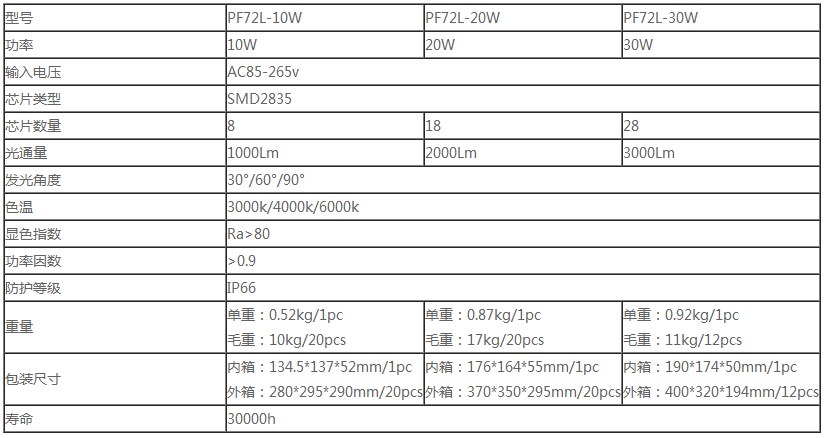 LED泛光燈---10W 20W 30W燈具尺寸: