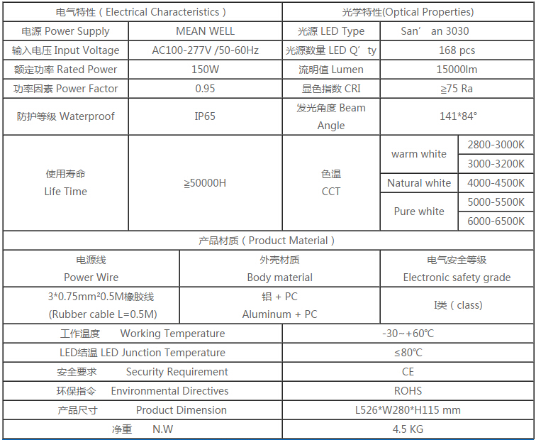 產品特點: 1.燈臂角度可180°調節,照射角度可隨意變化 2.采用高亮度LED芯片,亮度高、顯色性好 3.鋁加工而成,對流散熱設計,散熱性能好,保障光源使用壽命 4.抗17級風力,無形變、松動等現象,異常牢固 5.防護等級IP65 適用范圍: 主干道路、高速公路、高架路、市區街道、天橋、人行道等道路照明,以及廣場、學校、住宅區、工業區、公園等其他需要戶外照明的場所。 產品規格(Product Spec):PL29L-150W LED路燈